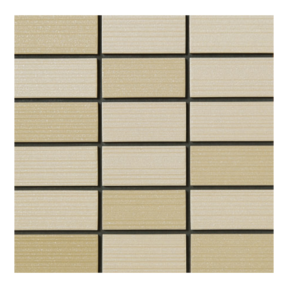 ●材質: BⅠ / 磁器質 / 施ゆう ●表面色調: 2色MIX ●表面形状: スジ面 ●タイル連結方法: オモテ紙張り ●張付け材: モルタル ●生産: 国産
