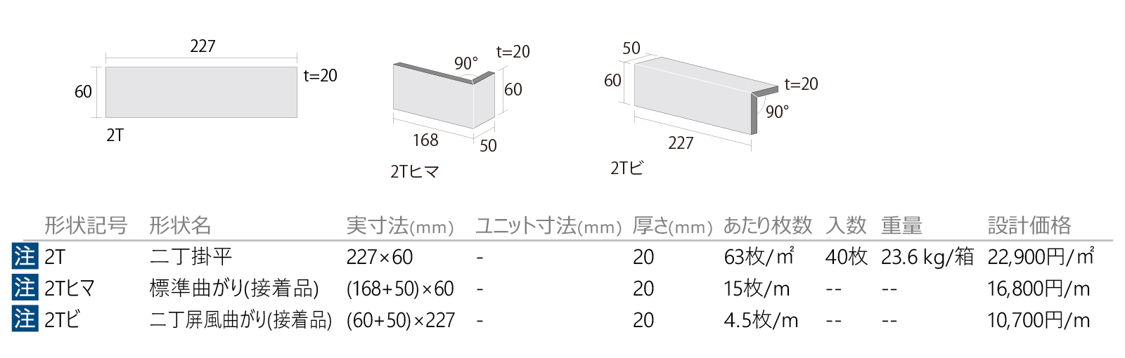 ●張付け方法: モルタル張り ●モルタル: SF-1020 ●標準目地幅: タテ8mm/ヨコ10mm ●目地施工: 一本目地 ●注意表記: ○数量300㎡以上・納期60日以上としてご注文ください。